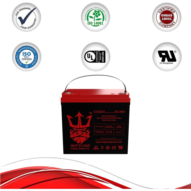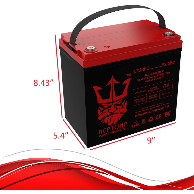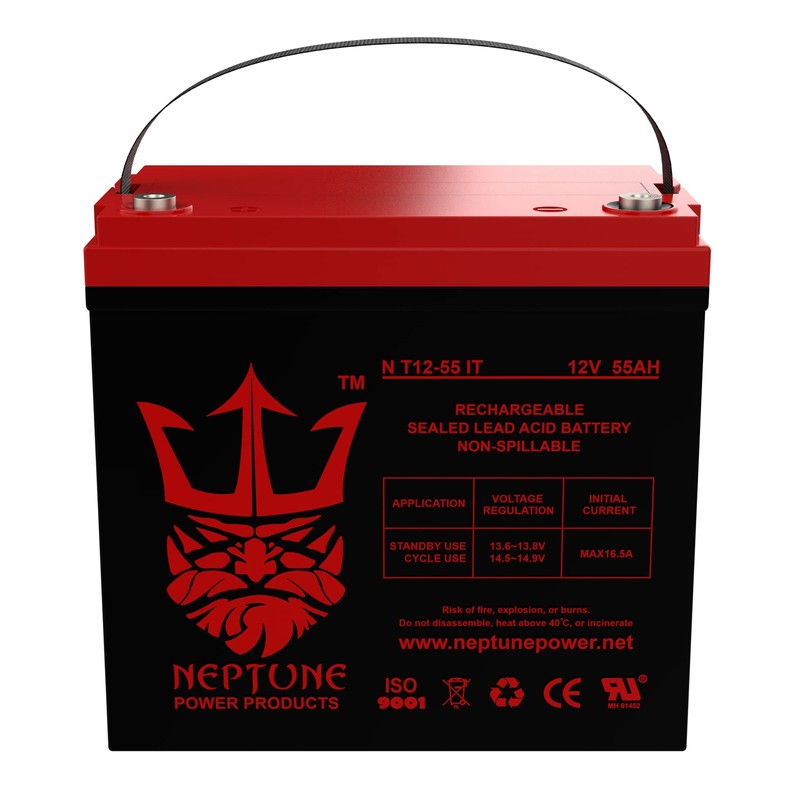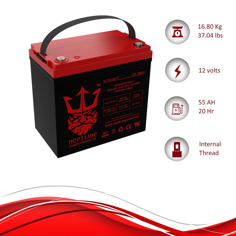 - Neptune Brand NT12-55 IT is a 12V 55AH Internal Thread Sealed Lead Acid (SLA/GEL) rechargeable maintenance free battery. Our Batteries Are UL Listed and Manufactured in our UL And ISO Certified Factories. Neptune batteries are Engineered and Manufactured to Meet or Exceed OEM Original Manufacturers Battery Specifications.
