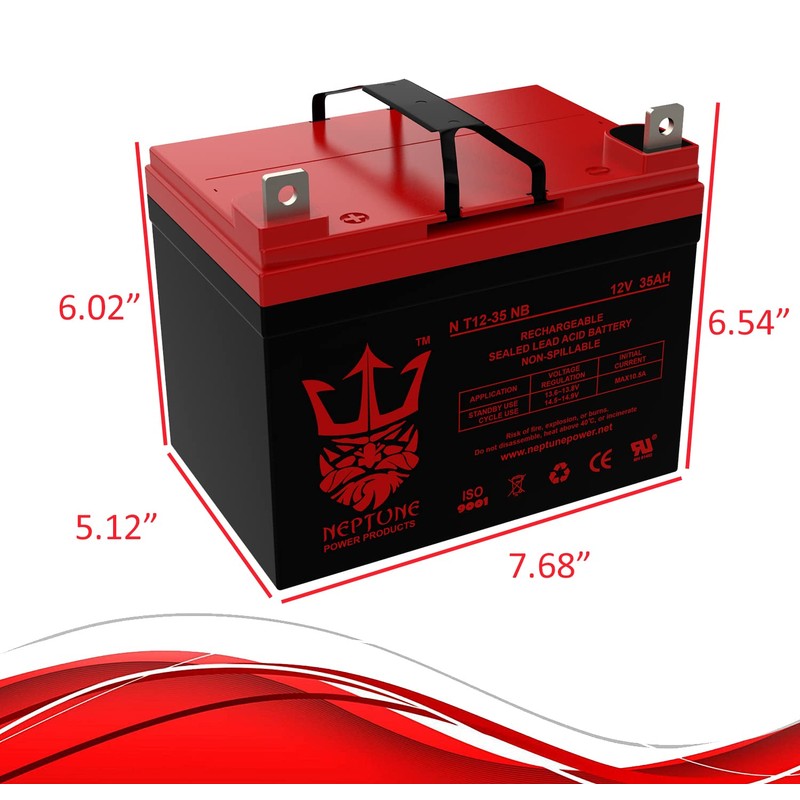 - Neptune NT-12350 12 Volt 35 Amp Sealed Lead Acid Hi-Capacity Rechargeable Battery