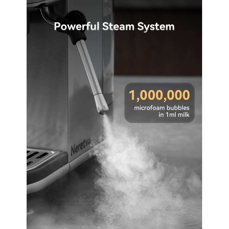 - PROFESSIONAL 20 BAR PRESSURE - Embrace barista-style brewing with Neretva espresso machine! With a 20-bar pressure system and a robust 1350W boiler, the espresso maker extracts premium coffee for lattes, cappuccinos, and more.