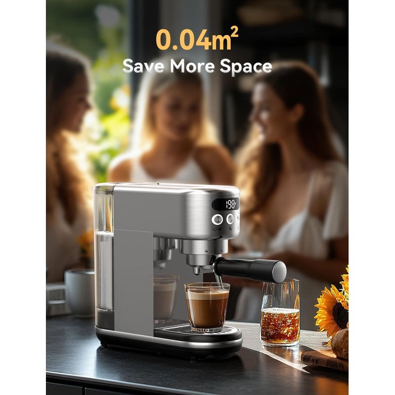 - COMPACT SIZE & STAINLESS STEEL - The sleek and compact design of this small espresso coffee maker fits any kitchen size. Beside, Our espresso coffee machines come equipped with an upgraded stainless steel set, which ensures easy installation and long-lasting durability. Perfect for gifting on occasions like Christmas, Mother's Day, Father's Day, weddings, birthdays, or as a thoughtful present for your loved ones.