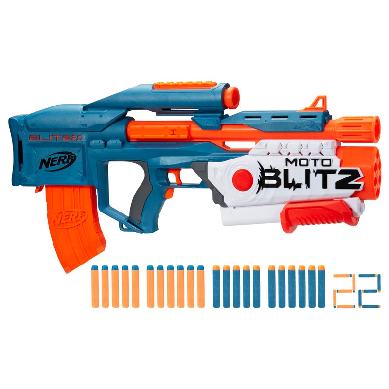 Nerf Elite 2.0 Motoblitz Blaster with Scope, Motorized 10-Dart Blasting, Airblitz 6 Darts, Outdoor Toys for 8 Year Old Boys & Girls