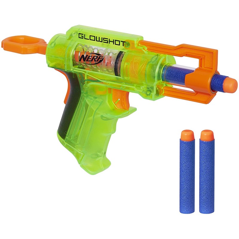 through the air. The Nerf N-Strike GlowShot blaster has a compact size for