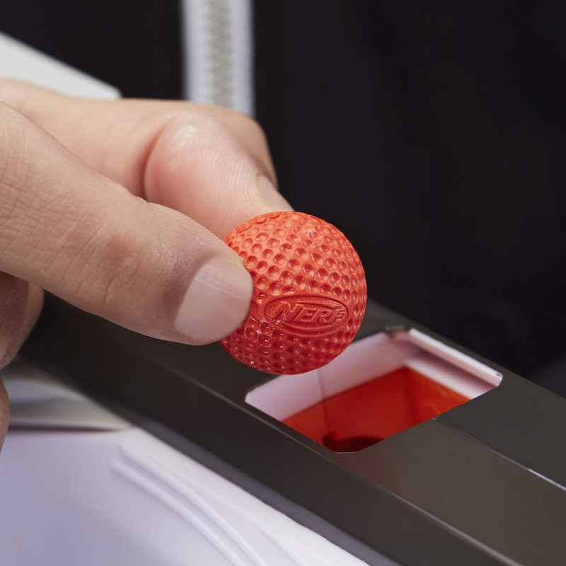 - Blaster holds 8 rounds and fires them at a velocity of 90 feet per second (27 meters per second)