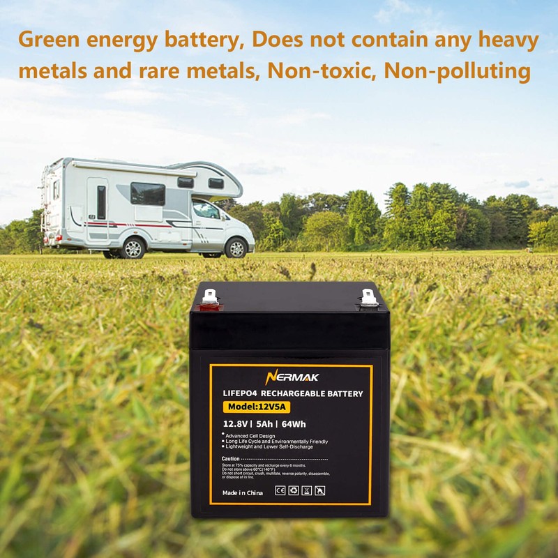 - 【Superior Performance】: Lithium iron phosphate battery has high energy density, Long cycle life, Good safety performance, No memory effect, etc. NERMAK LiFePO4 battery has built-in BMS protection to prevent overcharge, Over-discharge, Over-current and short circuit, and very low self-discharge rate. (Not motorcycle starter battery)