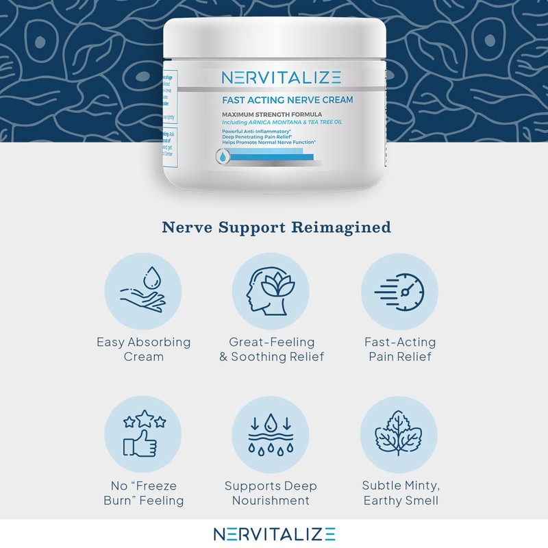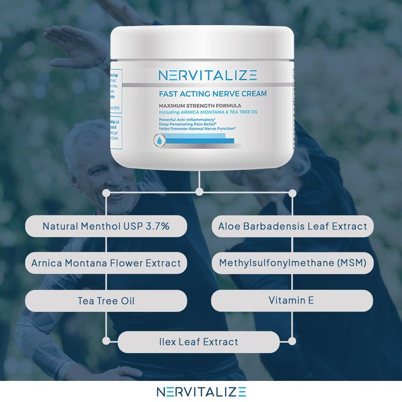 - Carefully Curated Natural Pain Reliever: We created Nervitalize with the belief that better relief for nerve pain begins with better ingredients. Featuring such ingredients like natural menthol USP 3.7%, aloe, arnica, and ilex leaf extracts, MSM, Vitamins B6 and E, and tea tree oil, our nerve cream pain reliever can help provide quick and effective results.