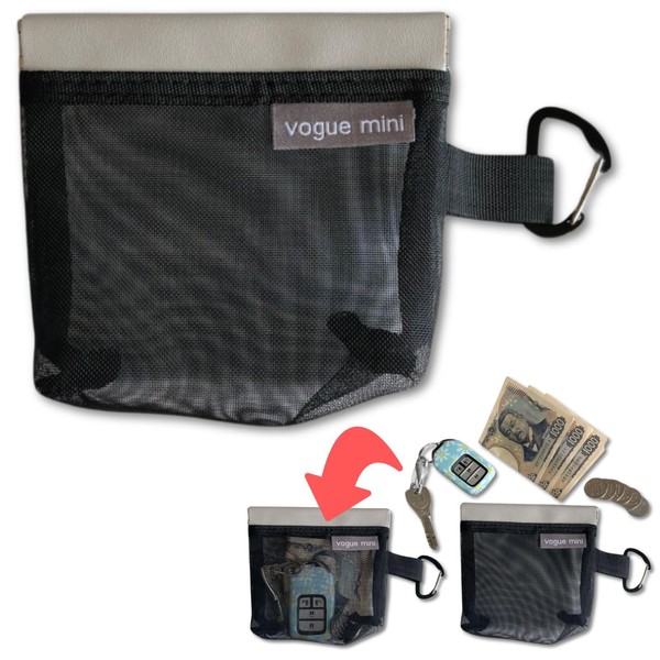 nervousrhinos Mesh Pouch with Carabiner, Mini Pouch, Small Items, Makeup Pouch, Small, Black