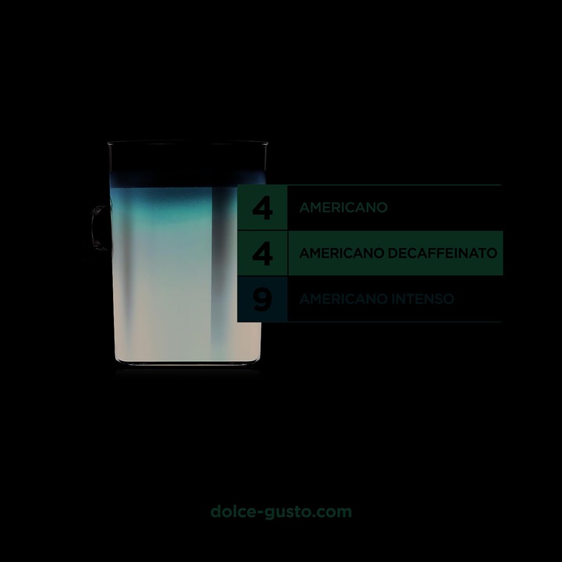 - Enjoy the taste of our NESCAFE Dolce Gusto Americano without the caffeine. This long cup of americano decaf is an elegant caffeine-free coffee that doesn’t compromise on flavour with fruity and floral notes, and a fine crema.