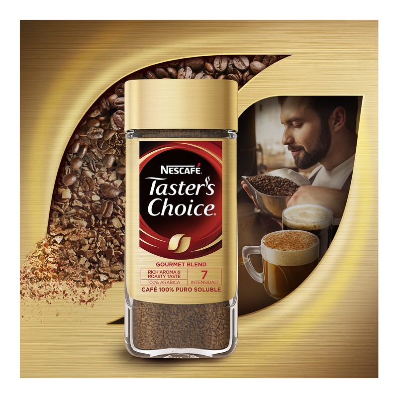 - Taster's Choice se elabora con granos exclusivamente seleccionados.