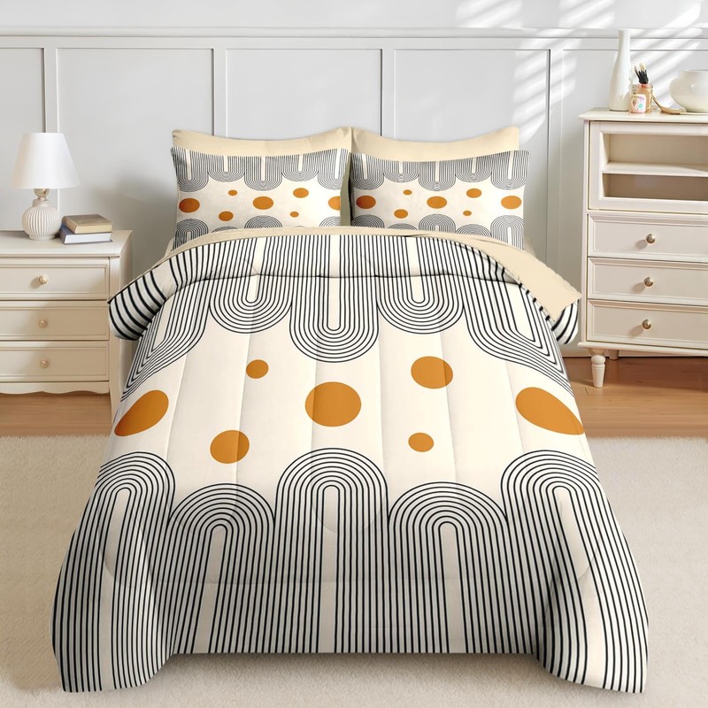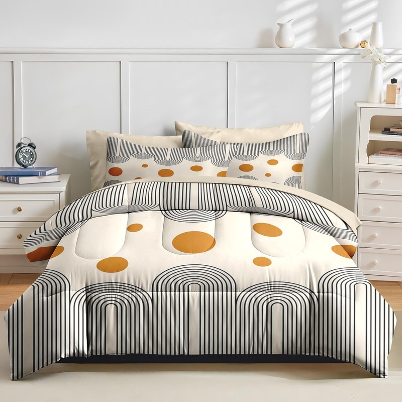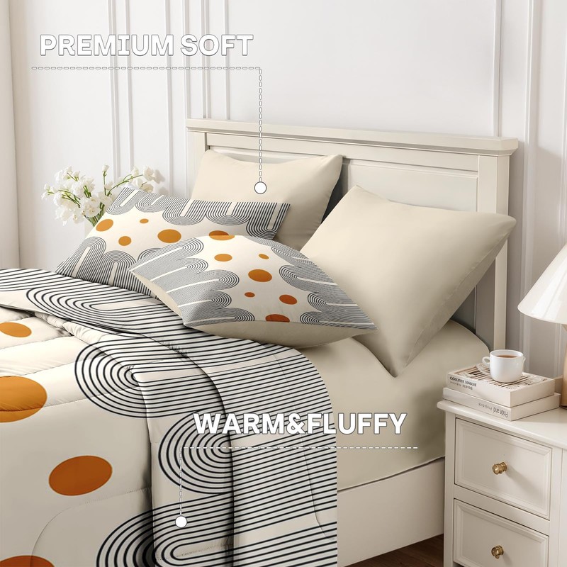 Nesker Comforter Set Twin Size, Boho Mid Century 5 Pcs Bedding for Kids and Adults, Minimalist Abstract Bed Sheet Sets with Fitted Sheet Pillowcase & Sham