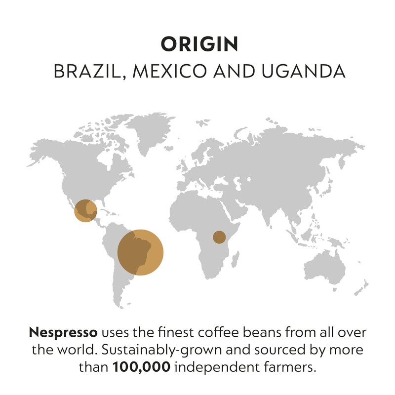 The masterful blending and split roasting of different Arabica and Robusta beans is the secret behind this mild and smooth double espresso. Latin American Arabicas deliver delicious malty toasted cereal notes that sing above this beautifully balanced cup. The Ugandan Robusta rounds out the blend by softening its sweetness but Double Espresso Dolce remains an ode to the sweet life.