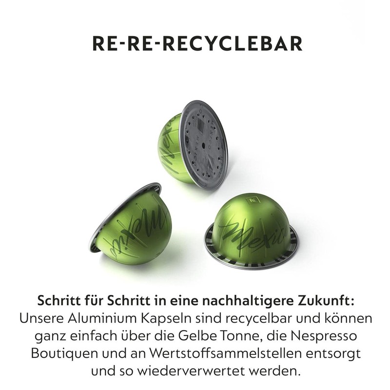 - The NESPRESSO capsules are made from at least 85% recyclable aluminium, a material that can be reused infinitely.