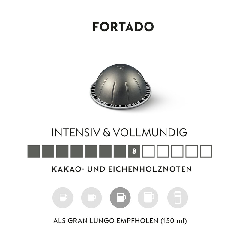NESPRESSO Vertuo Fortado Arabica & Robusta Coffee with Dark Roast Ideal for Gran Lungo (150 ml) Compatible with Vertuo Capsule Machines 50 Capsules