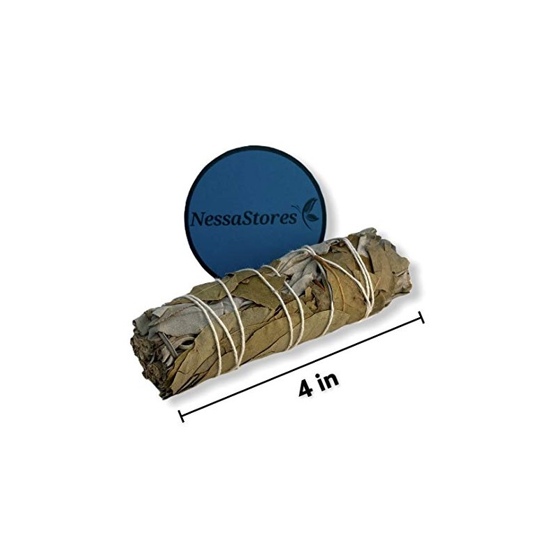 - NESSASTORES - White Sage + Bay Leaves Smudge Incense 4 Inch Bundle #JC-190