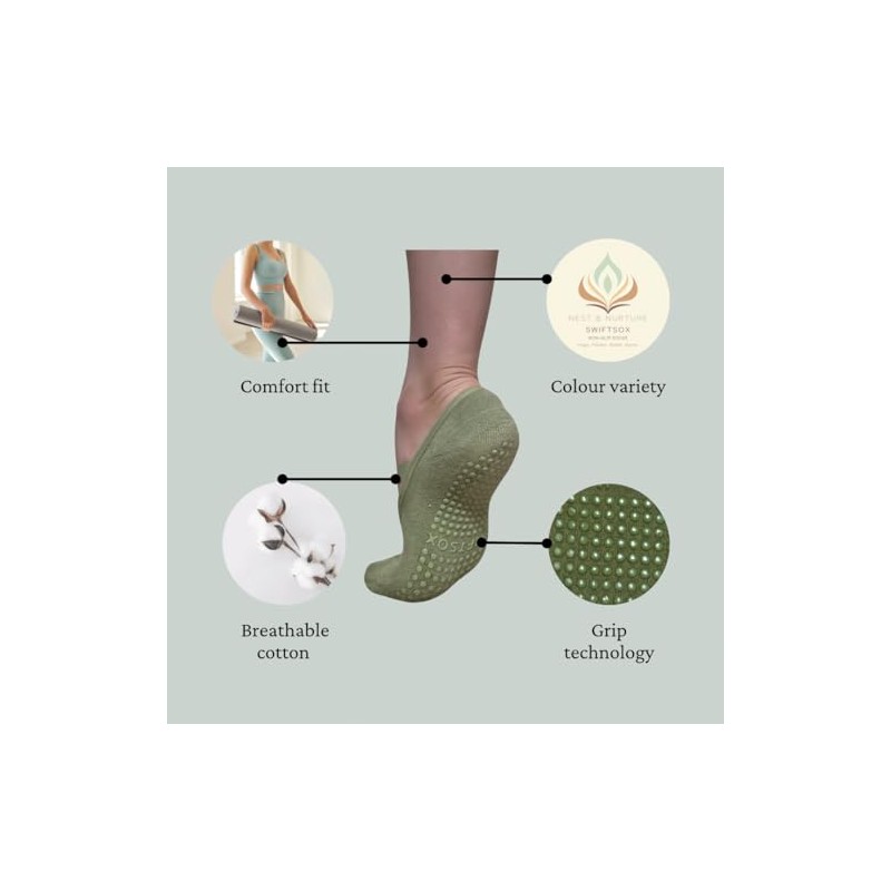 Nest & Nurture_Yoga Socks for Women Non-Slip Grips, Straps, Ideal for Yoga, Pilates, Reformer Pilates, Barre, Ballet, Dance, Barefoot Workout