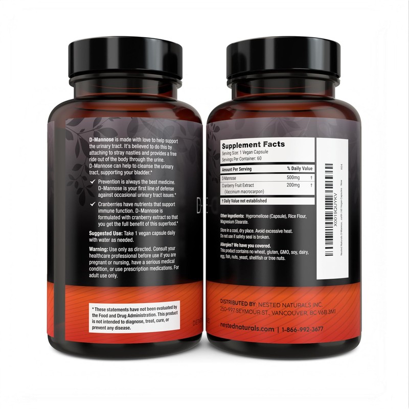 - Optimal Urinary Health: Nested Naturals D-Mannose harnesses the power of 500mg D-Mannose combined with cranberry extract, providing effective urinary and bladder support.