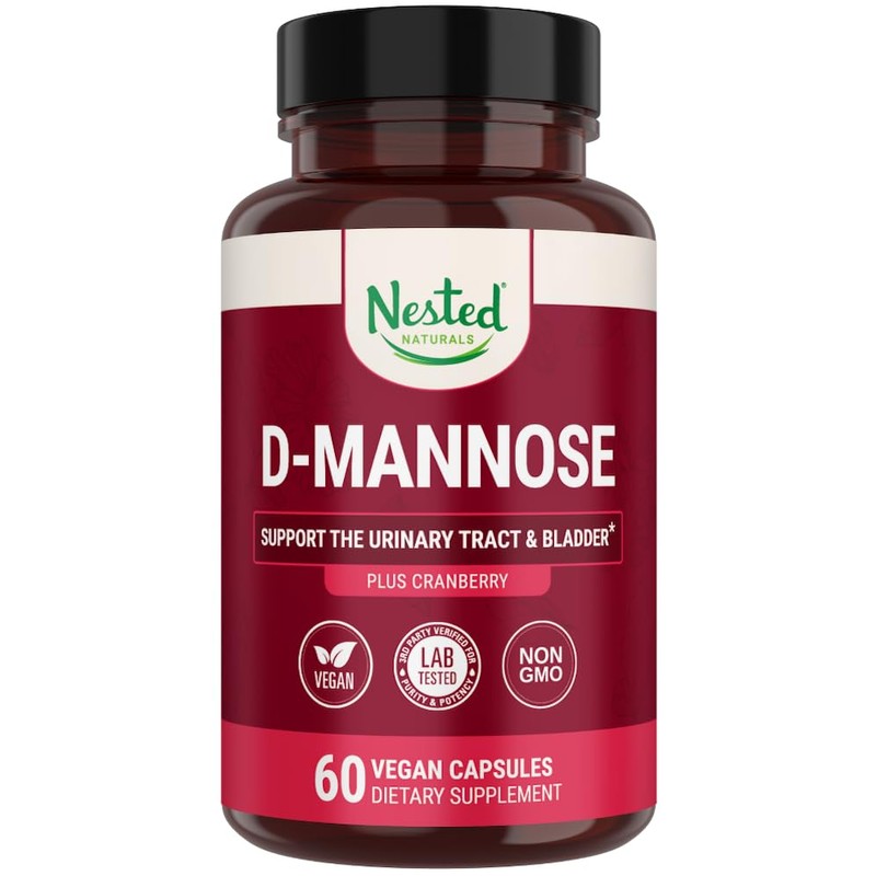 Nested Naturals Nested Naturals D-Mannose 500mg Caspules with Cranberry Extract, D Mannose Cranberry Pills, Urinary & Bladder Support, 60 Vegan Capsules