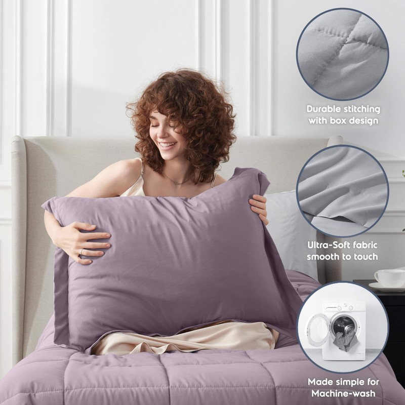 Nestl 7 Piece Twin Comforter Set – Dusty Purple Reversible Bed in a Bag – Complete Twin Size Bedding Set with Sheets, Set of 2 Down Alternative Pillows, Pillowcase and Sham