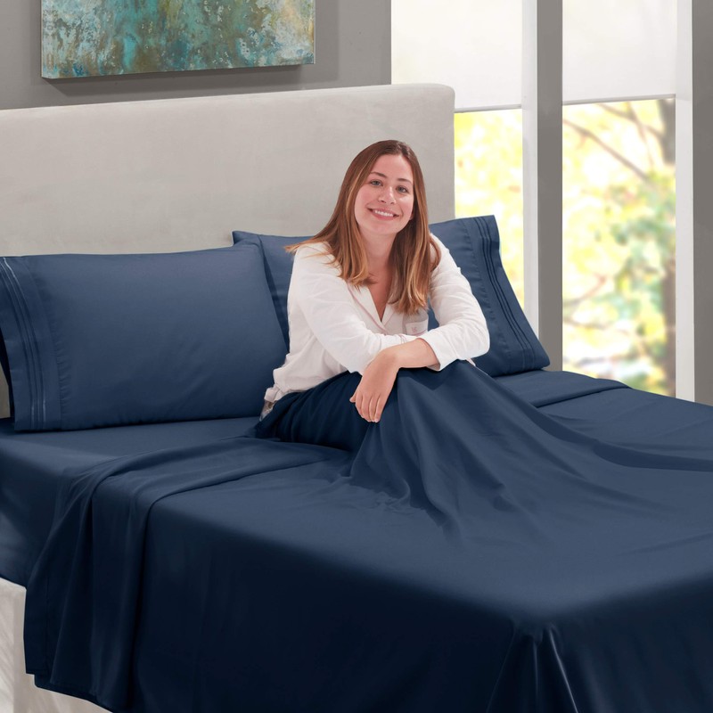 Nestl Deep Pocket Split King Sheets: 5 Piece Split King Size Bed Sheets with Fitted Sheet, Flat Sheet, Pillow Cases - Extra Soft Bedsheet Set with Deep Pockets for Split King Mattress - Navy Blue