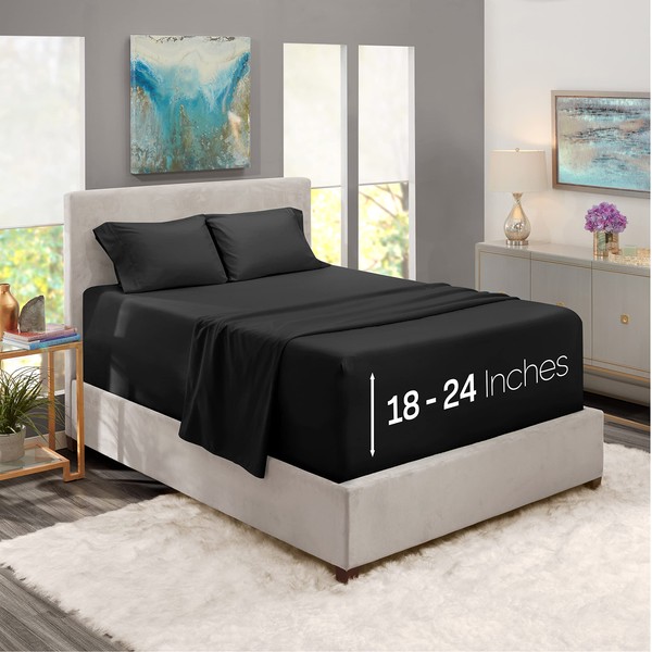 Nestl Extra Deep Pocket Sheets - Fits Mattress 18-24 Inches Deep, Extra Deep Pocket Queen Sheets Sets, 4 Piece Queen Size Sheets, Queen Sheets Deep Pocket, Black Sheets Queen