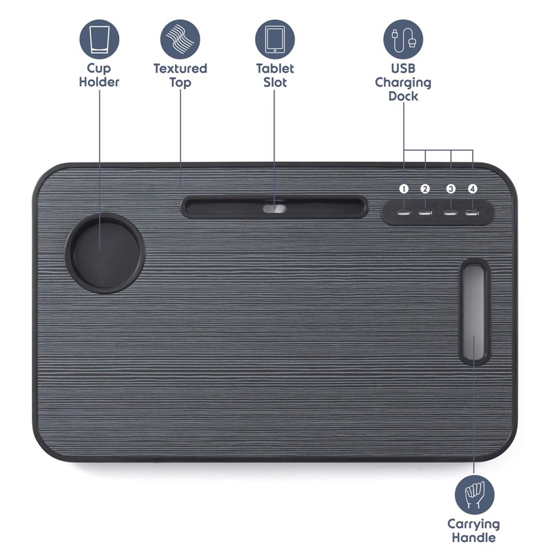 - Durable Construction: This lapdesk is crafted from durable and lightweight materials, ensuring maximum stability and a long-lasting product. It also includes a USB fan and light, which can be directly plugged into the USB ports for the perfect balance of productivity and comfort.