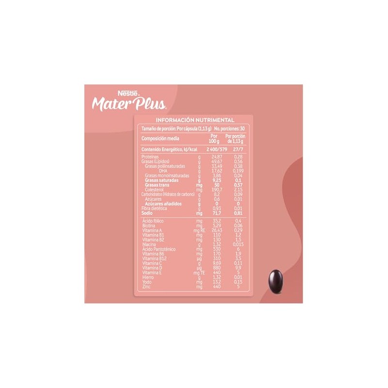 Nestl MaterPlus Cpsulas DHA (Omega 3), Vitaminas y Minerales 34g - Producto Original de Alta Calidad, Entrega Rápida y Segura, Garantía Incluida