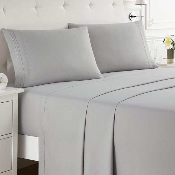 Nestl Queen Sheet Set - 4 Piece Bed Sheets for Queen Size Bed, Deep Pocket, Hotel Luxury, Extra Soft, Breathable and Cooling, Light Grey Queen Size Sheets