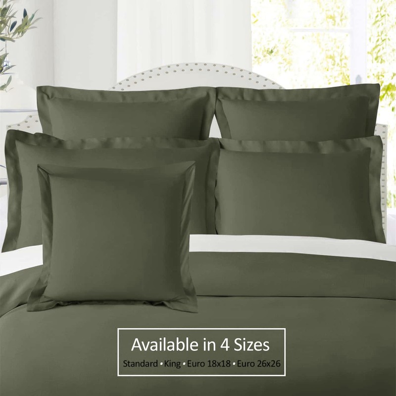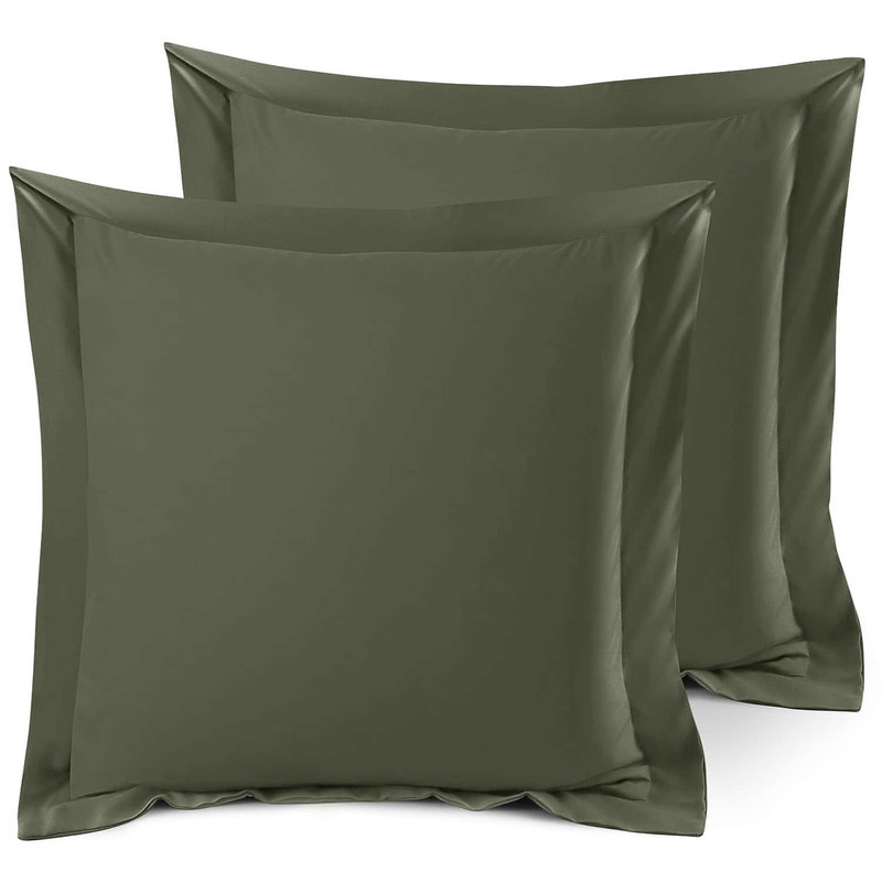 Nestl Soft Pillow Shams Set of 2 - Double Brushed Microfiber Pillow Covers - Hotel Style Premium Bed Pillow Cases, with 1.5” Decorative Flange, Euro 26"x26" - Olive Green