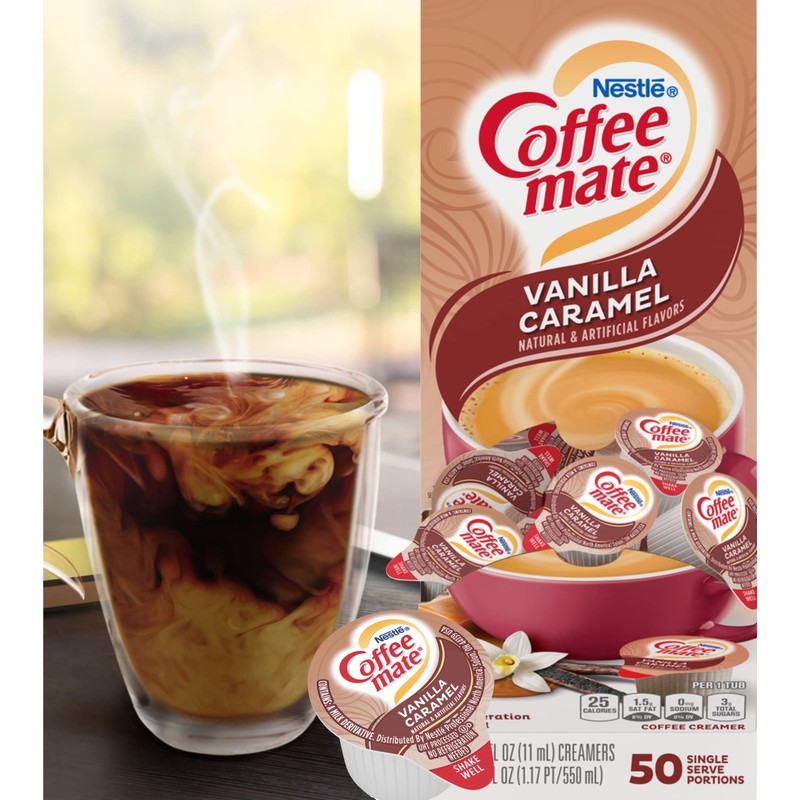- 2 - 50 Count boxes of Nestle Coffee mate Coffee Creamer Vanilla Caramel Flavor Liquid Creamer Singles