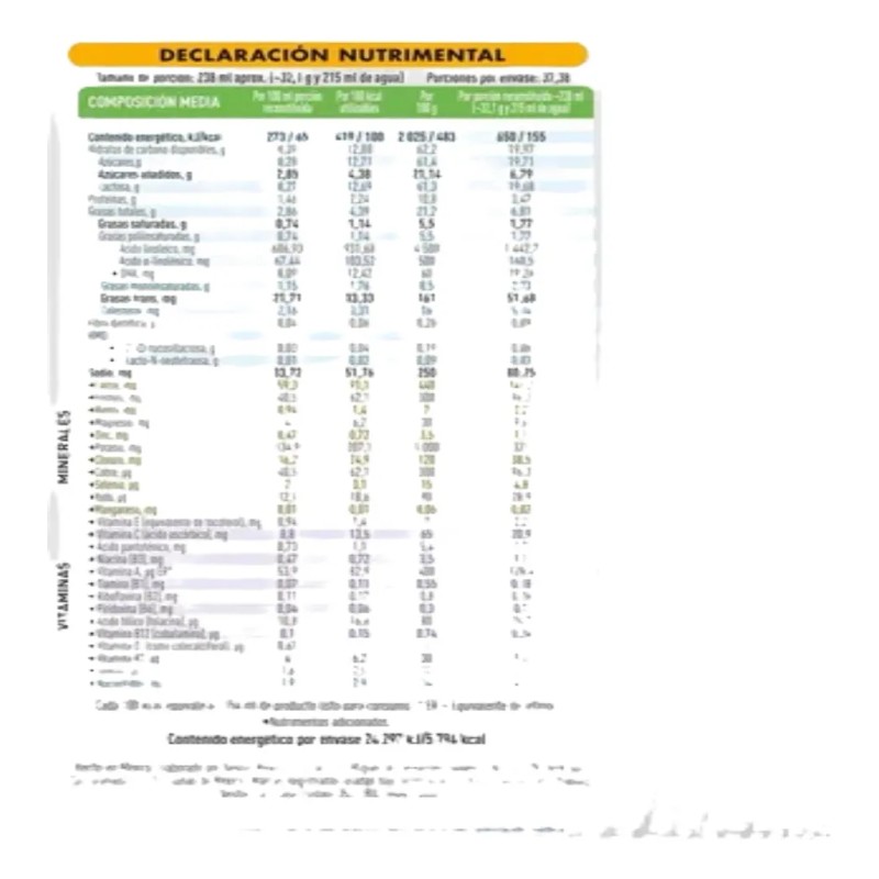 El envase de 360 gramos es práctico y fácil de almacenar, lo que facilita la preparación de las tomas. Además, la fórmula es apta para ser consumida por niños que no presentan intolerancias al gluten y contiene lactosa, lo que la hace adecuada para aquellos que ya han sido introducidos a estos componentes en su dieta.