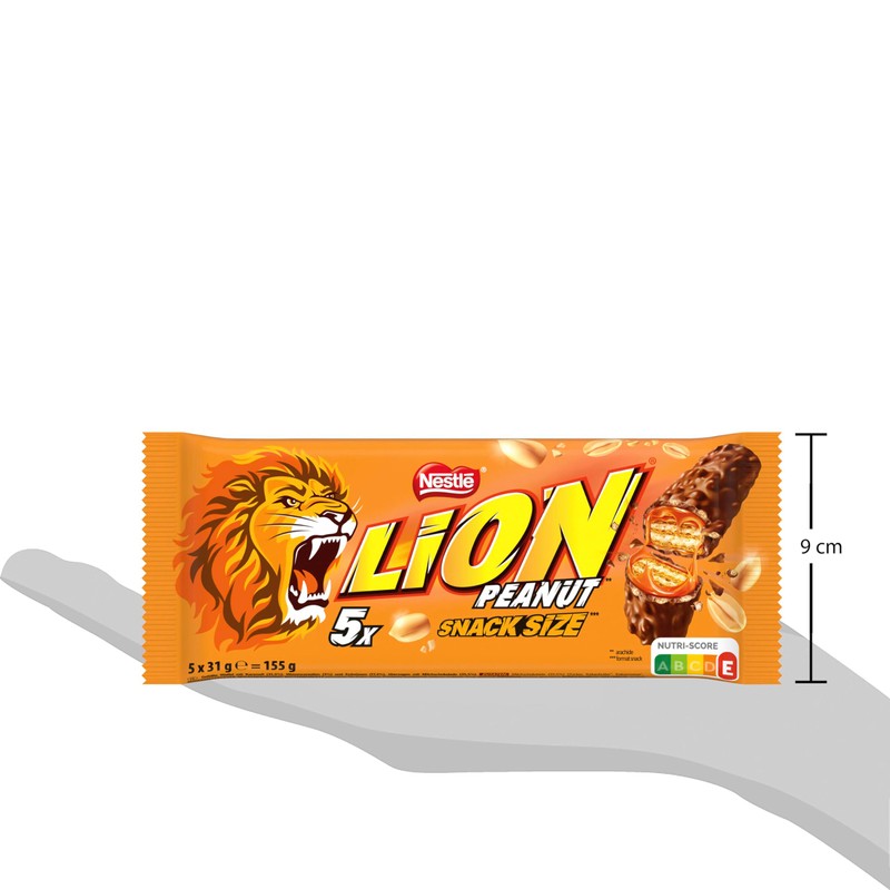 - 2 x 155g NESTLÉ Lion Peanut Snack Size 2 x 5 Individually Wrapped Waffle Bars with Caramel, Peanuts, Grain Crispies and Cocoa Glaze