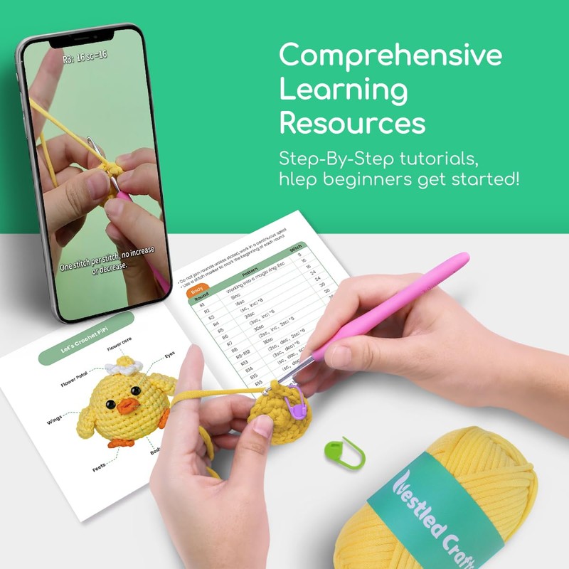 • Beginner-Friendly Instructions: The beginner crochet kit is designed with easy-to-follow tutorials, both in printed form and video format. Whether you're using a crochet kit for beginners or picking up crochet for the first time, you'll find clear, step-by-step guidance to help you master each technique.