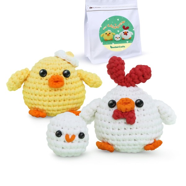 NestledCrafts Crochet Set, Complete Crochet Sets for Beginners Adults, Knitting Set, Soft Yarn, Birthday Gift, Includes Step-by-Step Video Instructions, Instructions (ChickCrew)