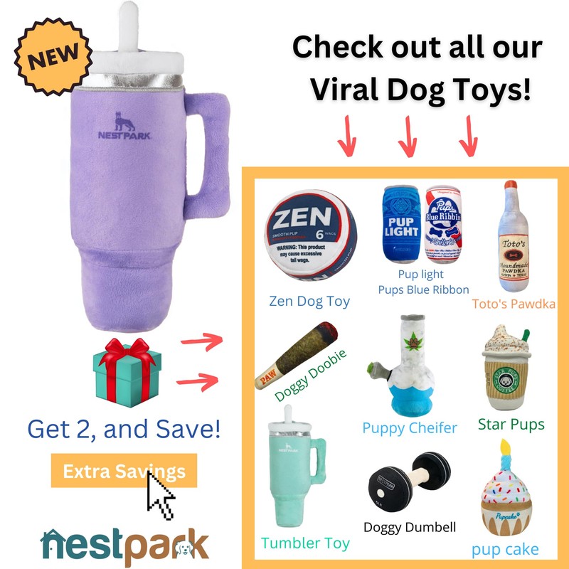 Nestpark Tumbler Cup Funny Dog Toy - Parody Plush Squeaky Crinkle Dog Toy (Orchid Purple)