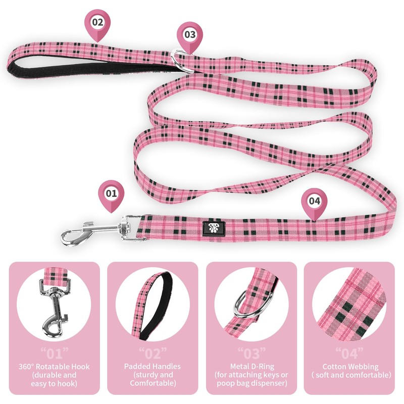 NESTROAD Dog Collar and Leash Set,Durable Leather Pet Collar with Quick Release Buckle,Adjustable Nylon Dog Collars for Small Medium Large Dogs(Small Collar + 5FT Leash,Cherecked Pink)