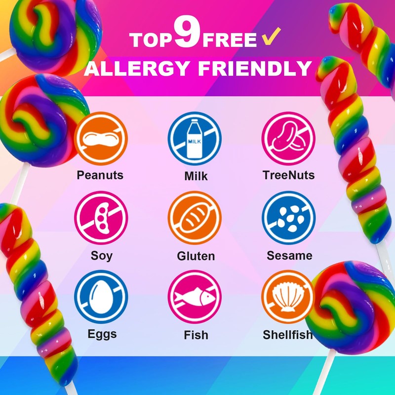 - JOY AND PLEASURE: Perfect as cake decorations, with juices, cocktails, milk, matcha, and various beverages, they are a perfect snack for any time and place. As the vibrant rainbow candy lollipop melts in your mouth, enjoy absolute happiness and sweetness, adding a rainbow to your family's life.