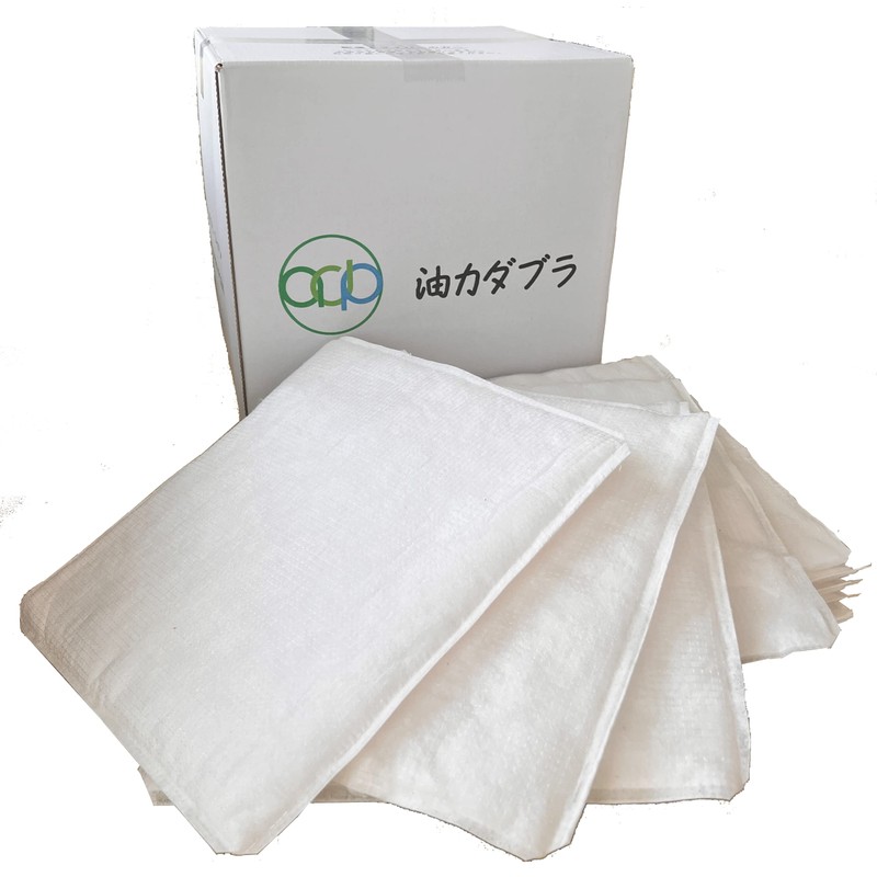 Super adsorption! Super water repellent. Super collection! Super Durable! Sold as a case (6 pieces) *This is a strong oil suction sheet with amazing adsorption. Using nanodizing technology, 1/100 of the size of a hair ultrafine fibers (nano fiber) absorb oils up to 1.5 liters (40-50 times its own weight). * Lightweight polymer net not easy to tear Great for removing stubborn greasy stains Leaves no fuzz. *The only adhesive material in the industry *Although conventional products have a suction capacity of about 10 to 20 times its own weight, oil kadabura has about 3 times its suction capacity. It can reduce the amount of materials you have used in your past to a third of it, so it is environmentally friendly, and environmentally friendly. * The oil kadabra has high hydrophobic properties due to its special structure which makes it difficult to get into the inside. Even if used in an oil separating tank, it will not sag even with water. Improves workability. *It has high concentration to prevent oil from escaping once absorbed easily. * Spill resistant absorbed oil makes retrieving and disposing easy *The entire suction sheet is covered with a soft plastic net, which prevents breakage and spillage and improves the safety of handling, so you can use it with confidence. *Can also be used as a soled oil removal mat when used in conjunction with an original rubber bed mat (sold separately). This is a very convenient product that is useful in oiled kitchens and factories. *Suitable for soaking in water such as grease traps, stums, etc. *Not for use in filtering or removing edible oils. *Please follow the instructions for disposal purposes. *Do not put it beside fire. It may burn. *The amount of oil adsorption depends on the type and condition of the oil being applied. Please refer to the above measurements for reference only.