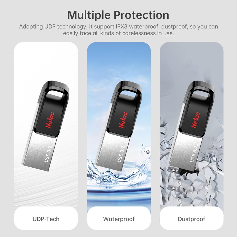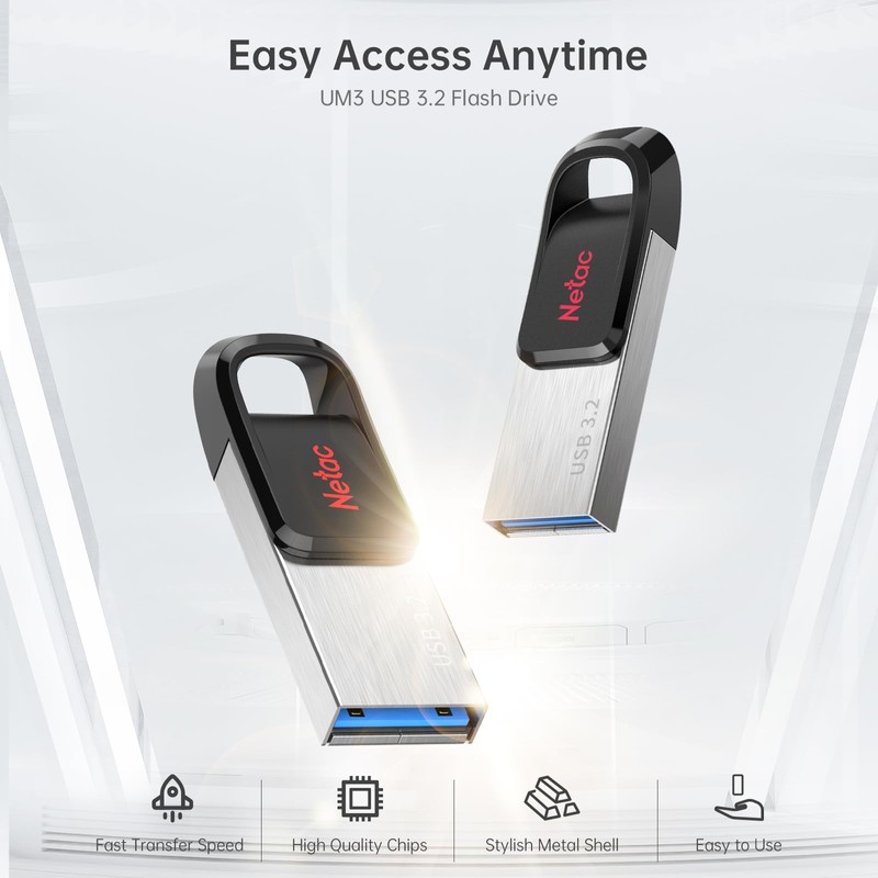 -The Netac USB 3.2 64GB flash drive with read transfer speeds up to 120MB/s.