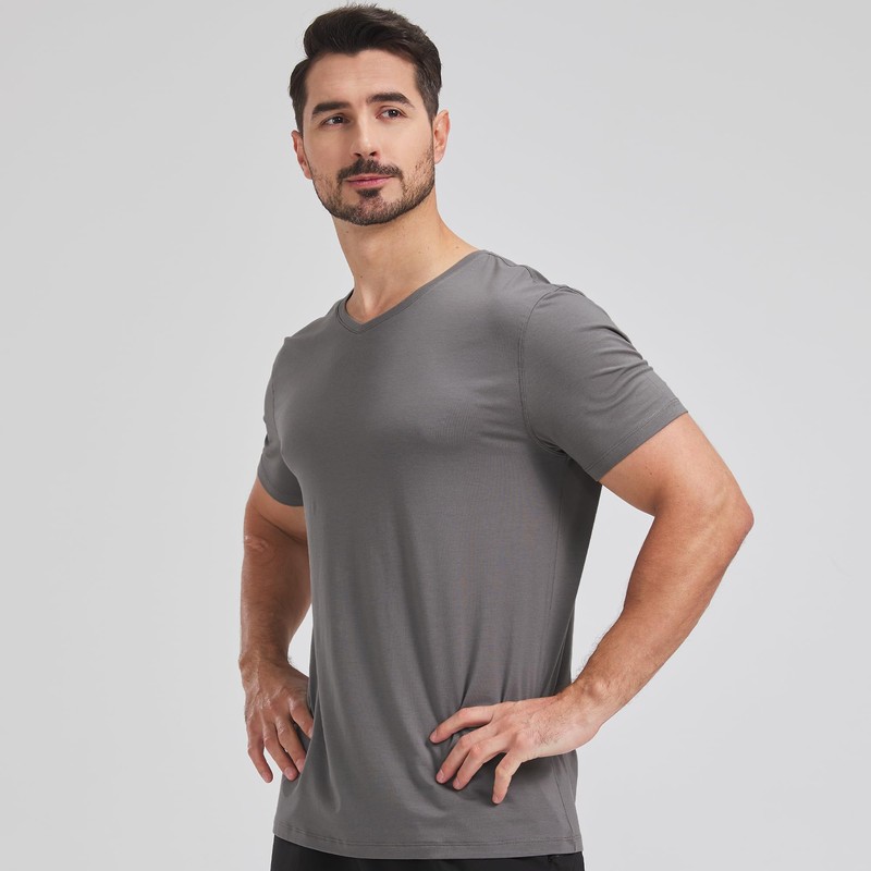 netdraw Men's Ultra Soft V-Neck Bamboo Viscose T-Shirt Comfy Lightweight Casual Basic Undershirts Pajama Tops (Charcoal Gray, Small)