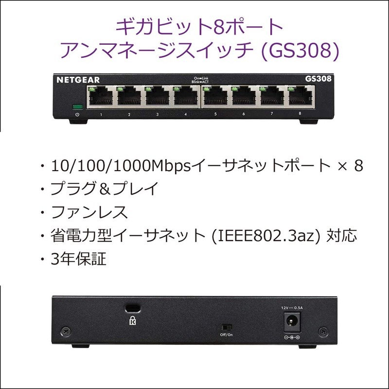 Netgear GS308-300JPS Netgear Switching Hub 8 Ports, 1G, Metal Casing, Quiet Fanless, Unmanaged Switch