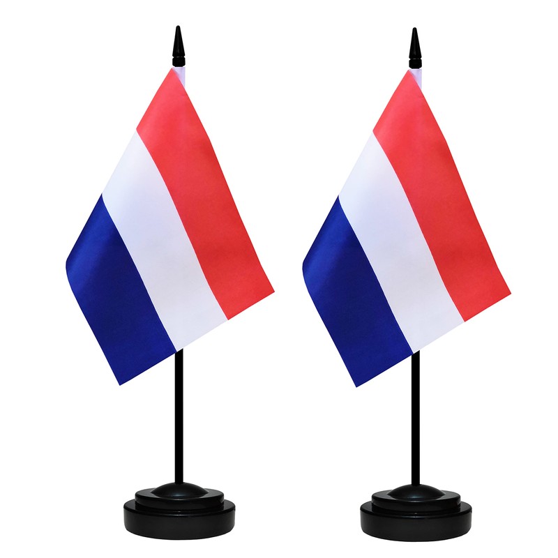 Netherlands Desk Flag Set, 2 Pack Dutch Table Office Flags, Small Mini Desktop Flag With 12" Solid Black Pole, Black Base, Miniature Desktop Flag