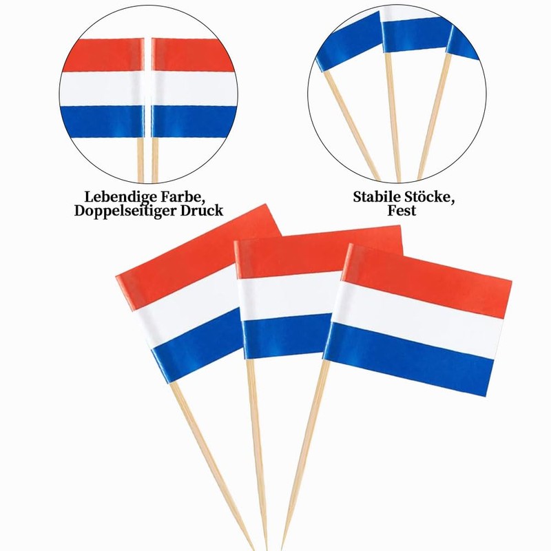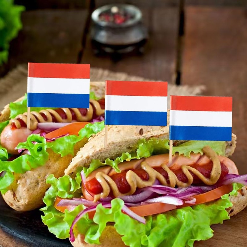 Netherlands Miniature Toothpick Flags Decorations Small Cupcake Toppers Cocktail Food Flags Independence Day Party Bar Decorations (Pack of 100)