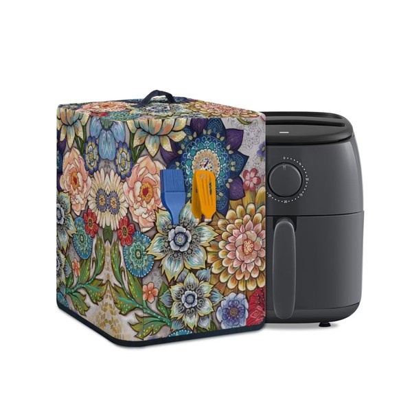 NETILGEN Dust Cover for Air Fryer and Extra Accessories, Dust Proof Easy to Clean Air Fryer Cover Electric Appliance Cover with Pockets and Handle, Boho Flower