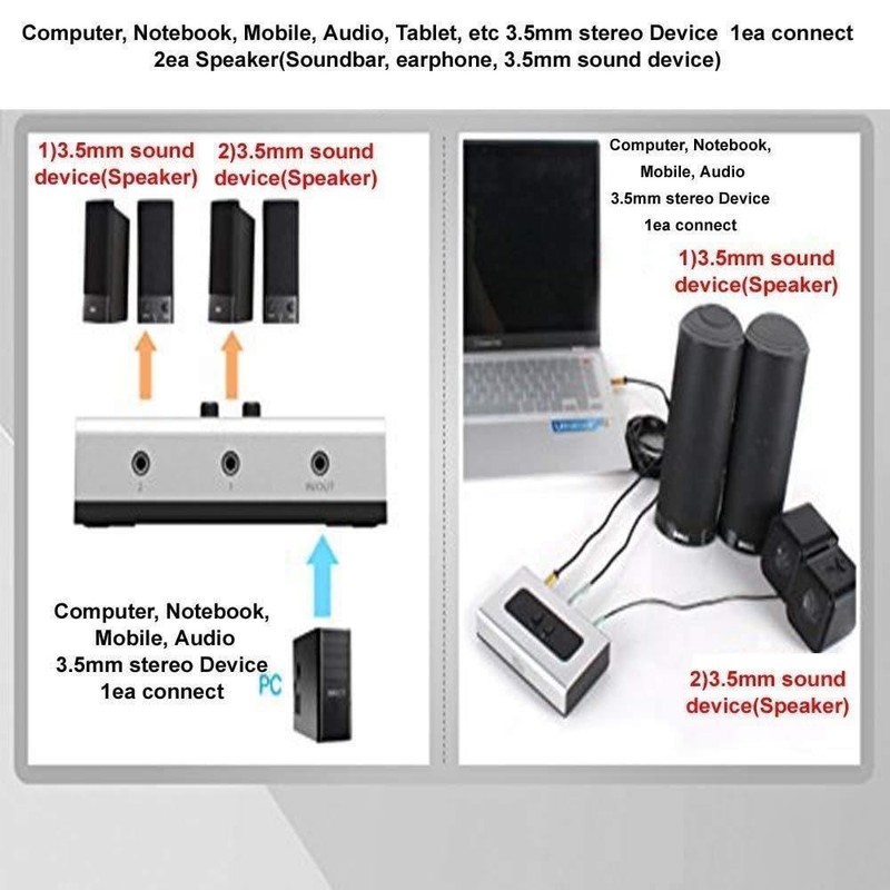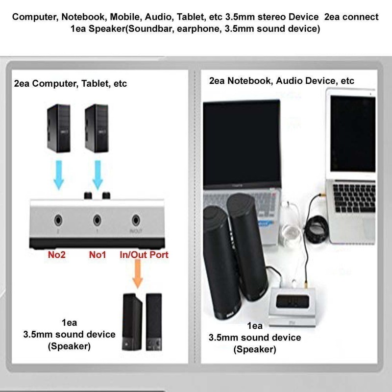 NETMATE 3-Port 3.5mm Stereo Audio Switch, 3.5mm+RCA Audio Switcher 2 Input 1 Output/Audio Splitter Bidirectional Audio Switch with Volume Control Switch Knob for Speaker Headphone