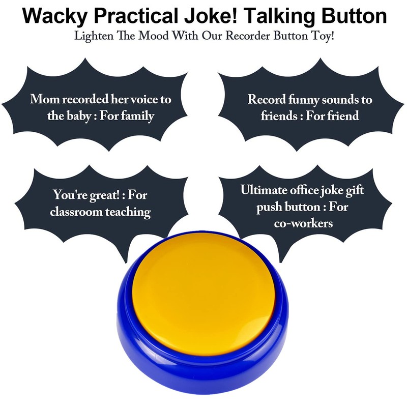 - ✔【Funny Button】-This recordable button is excellent for a funny prank, office desk gadget, gag gifts, leaving meaningful messages for your loved ones, game buzzer, and even alternative communication and speech therapy!