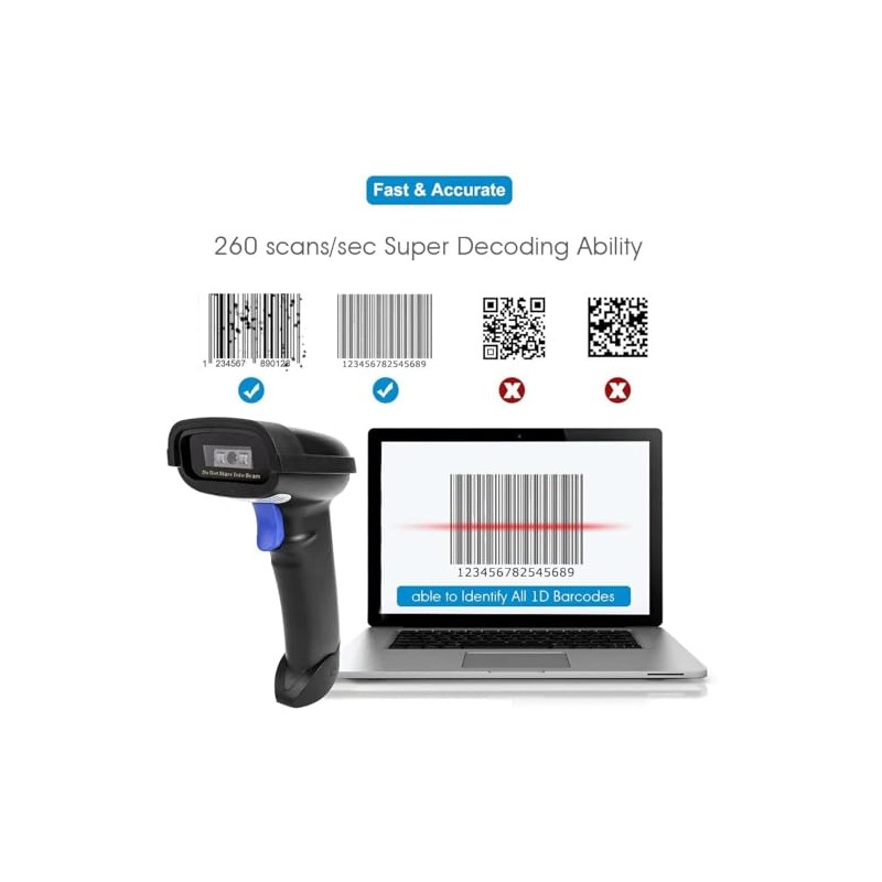 • 2600-mAh-AKKU mit UPGRADE: Kontinuierliches Scannen bis zu 200.000 Mal bei voller Ladung. Nach einer vollständigen Aufladung kann der Scanner mindestens einen Monat lang verwendet werden, auch in Lagerhallen und an Kassen, wo Scanner häufig verwendet werden. In Bibliotheken und Krankenhäusern kann es sogar noch länger genutzt werden.