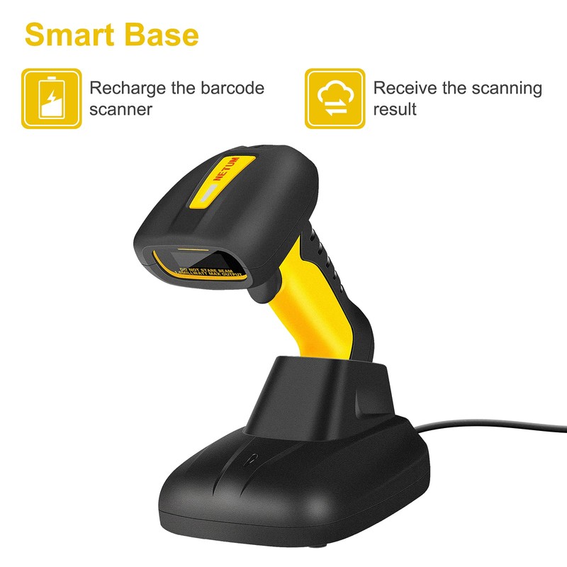 NetumScan Wireless 2D Barcode Scanner, Waterproof and Antimicrobial Barcode Reader (QR PDF17 Data Matrix Code) Charging Station with Built-in Receiver NS1202W
