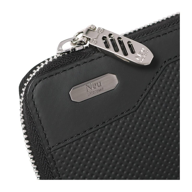 Neu Interesse 3390 Men's Long Wallet, Round Zipper, Garcon-Shaped Coin Purse, Large Capacity, Honeycell, Genuine Leather, [05] Navy x Black