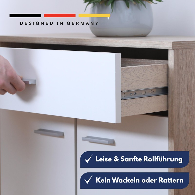 - ✔ Gentle and stable roller guide – unlike other full extensions, the NEUFELD drawer runner glides easily and silently without the drawer wobbling or even collapsing