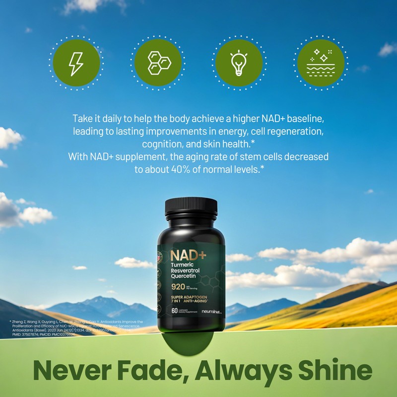 - ✅【7 IN 1 ANTI-AGING FORMULA】Our Nad+ formula includes 7 powerful ingredients carefully selected based on scientific research.These powerful ingredients include NAD+,Turmeric,Resveratrol,Quercetin,Biotin,Fisetin and Black Pepper.