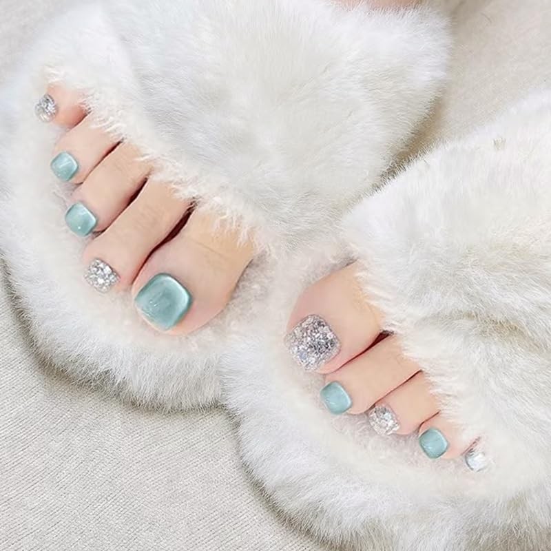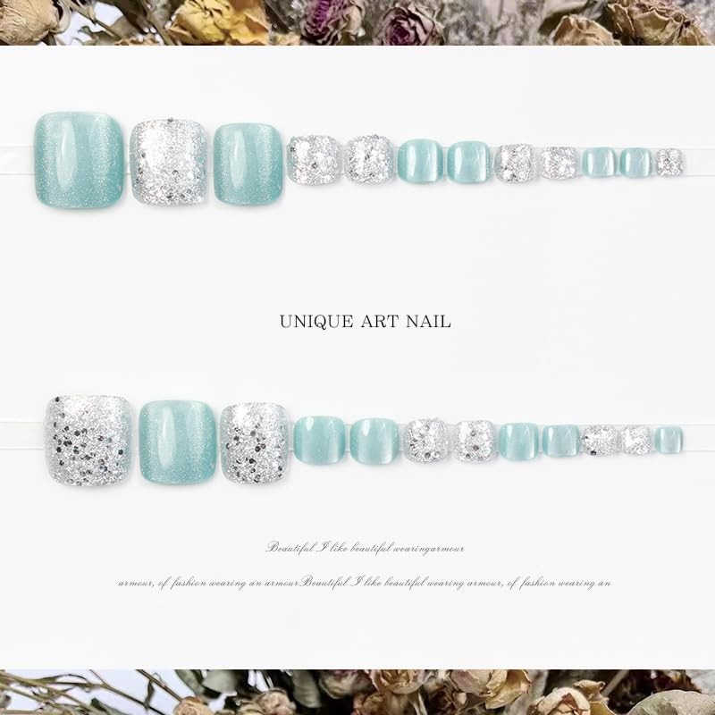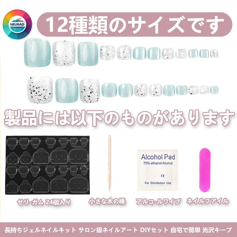 [NEURAD]ネイルチップ 足用 水色 24枚入 フットネイル フットネイルチップ 足用ネイルチップ マグネット 夏 付け爪 猫目石 可愛い 人気 シンプル